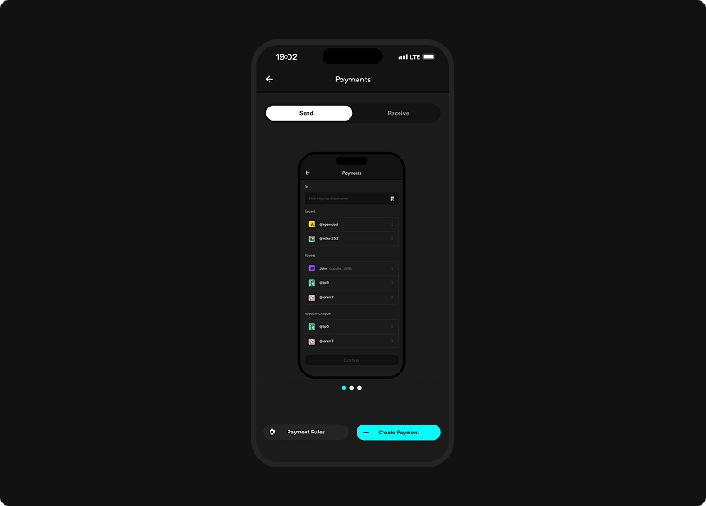 Payments is the workflow surface for that. It combines Send and Receive in one screen, then branches into Recurring Payments for approved repeat relationships and One-off Payments for new or occasional recipients.